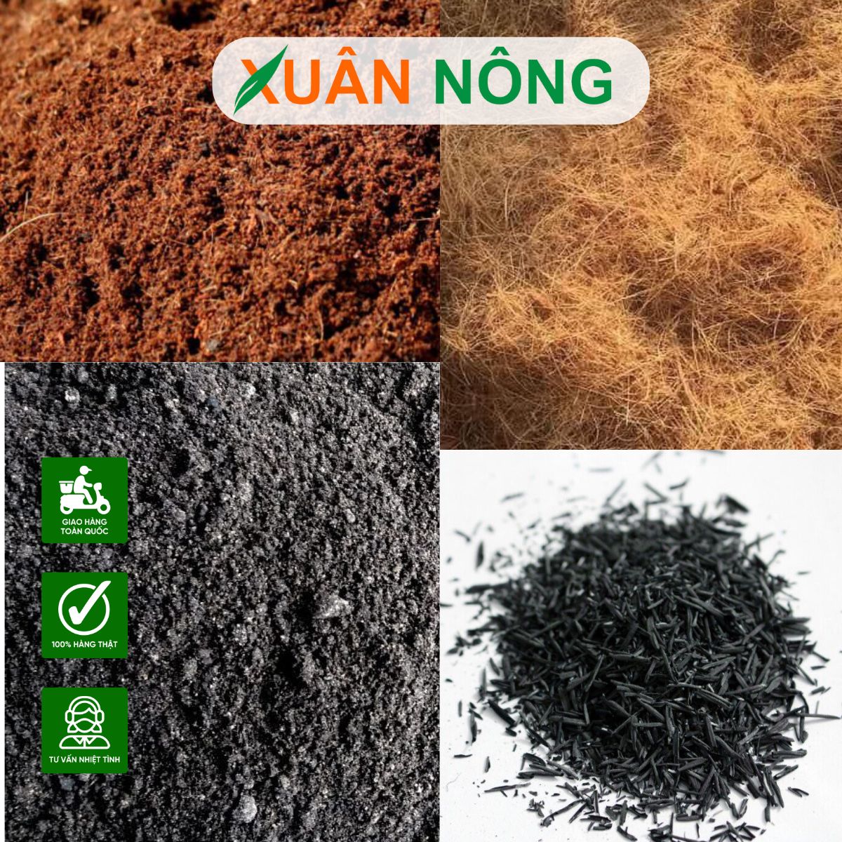 Xơ dừa và trấu hun làm nền, phân trùn quế tăng độ giàu dưỡng chất.