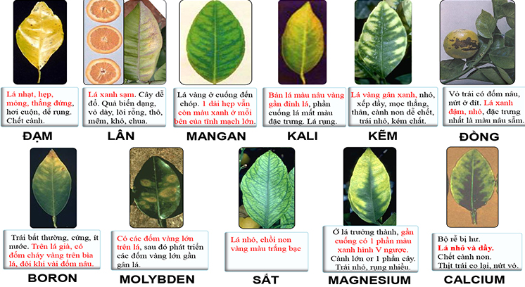 Đối với dinh dưỡng trung, vi lượng( Ca, Mg, Mn, Bo, Zn, S, Fe,…)