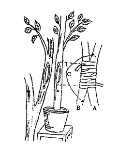 A. Gốc ghép; B. Cành ghép; C. Chỗ rời nhau sau khi đã tiếp hợp