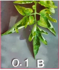 - Nếu thiếu Bo: chết đỉnh sinh trưởng (đọt), lá đổi màu, hoa khó hình thành, rụng hoa, trái,giảm sức sống hạt phấn, trái méo, xốp, lép