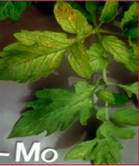 - Thiếu chất Molypden (Mo): Cây kém phát triển, xuất hiện các đốm vàng có kích thước lớn lá cây.
